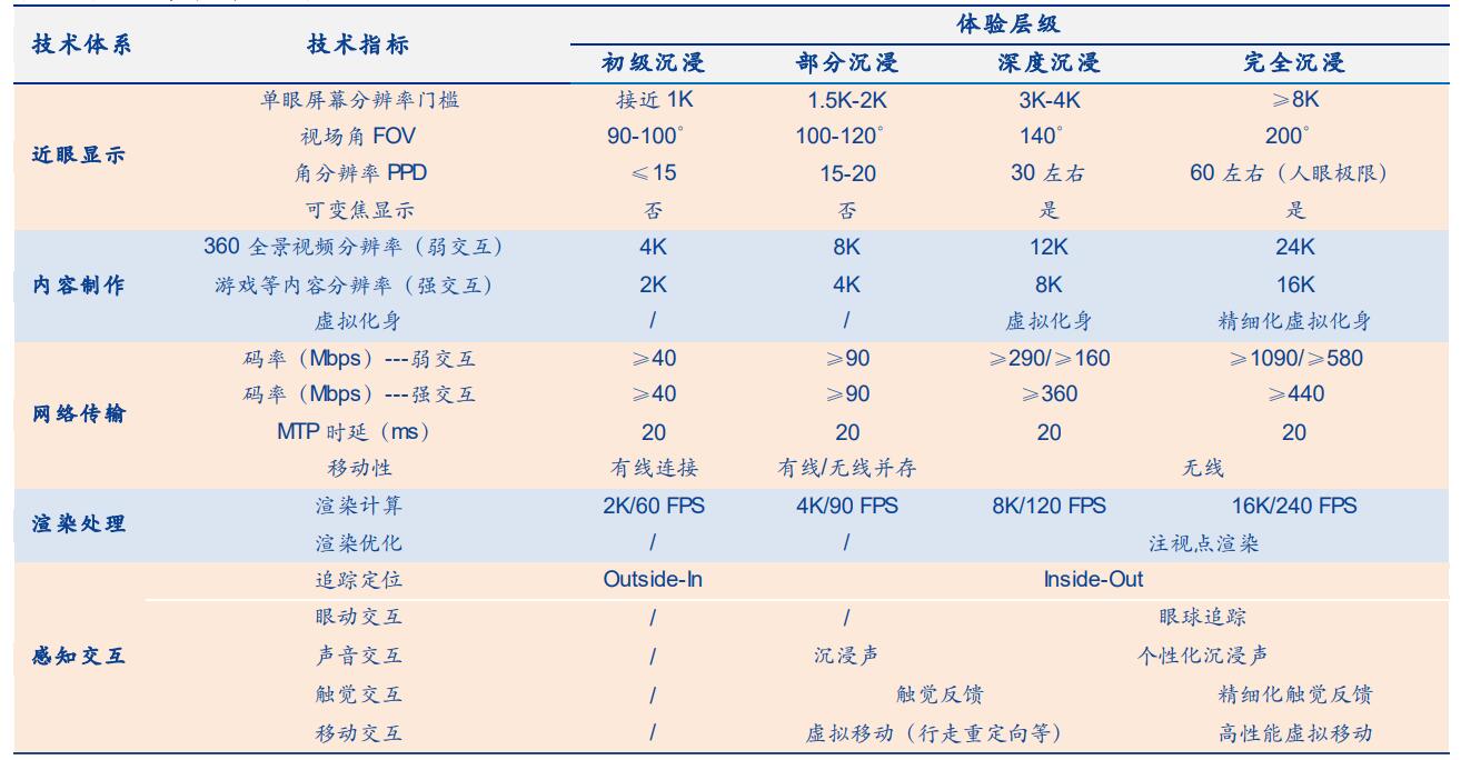 表 1:虛擬(增強)現實沉浸體驗分級