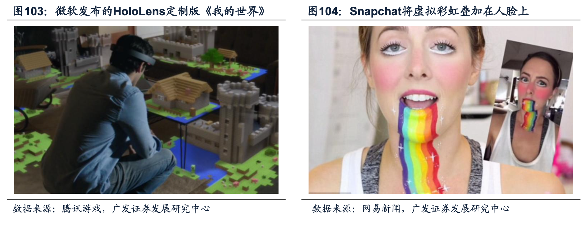AR從游戲領域切入應用市場的發展思路已經被Pokemon Go的成功所驗證。進一步設想,如果在Pokemon Go中應用更為先進的MR技術,游戲可能變成全新形式:玩家在捕捉小精靈時不是通過滑動屏幕投擲精靈球,而是把手放在攝像頭前屏幕自然的顯示玩家手中握有精靈球,整個的投擲過程以及砸中與否將和真實世界遵從相同的物理規律。隨著技術從AR進化為MR,游戲體驗將從輕度轉變為重度,為不同需求的玩家提供更豐富的游戲選擇。2014年,微軟斥資25億美元收購《我的世界》游戲開發商Mojang,2015年初發布了配合HoloLens眼鏡的游戲版本,AR技術賦予其全新的游戲體驗:Minecraft世界可以產生在室內的家具上,這些家具會隨著游戲內的爆炸呈現出相應的破碎效果,比如在桌子上炸出一個洞之后透過它可以看到下面靜靜流淌的河流。如此大手筆的投資體現微軟非常看好AR這種后現代式交互方式,并不遺余力的為自家AR硬件設備進行營銷推廣。